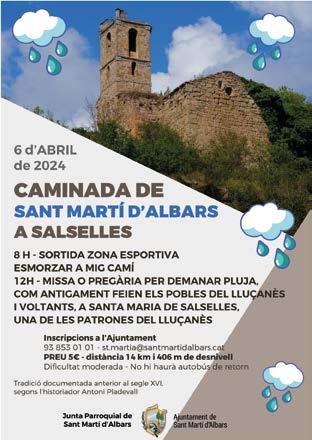 L’Ajuntament de Sant Martí d’Albars i la junta parroquial del poble han recuperat la caminada fins a la parròquia de Santa Maria de Salselles, actualment en terme de Borredà. La caminada, de 14 quilòmetres, es farà el pròxim dissabte 6 d’abril, sortint a les 8 del matí del nucli de Sant Martí.