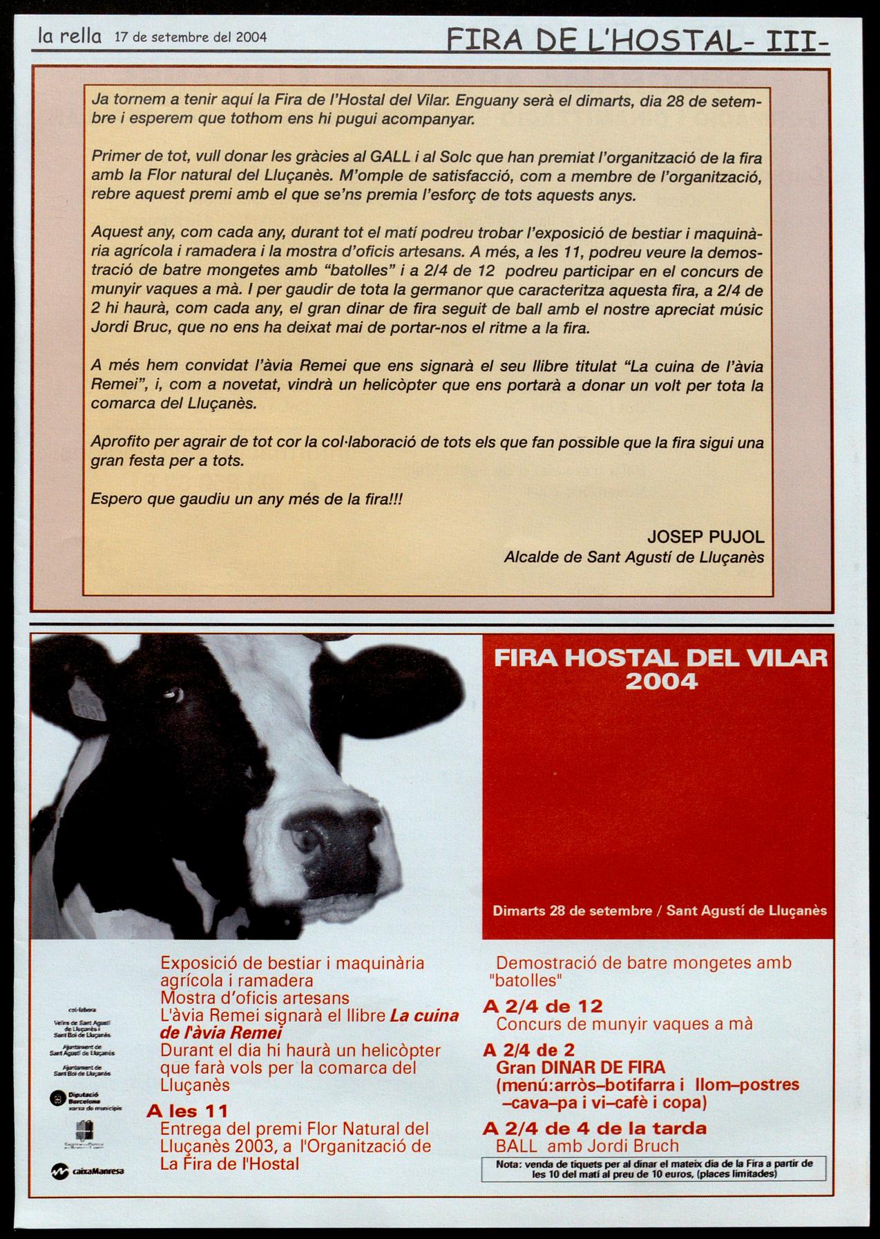 Ja tornem a tenir aquí la Fira de l'Hostal del Vilar. Enguany serà el dimarts, dia 28 de setembre i esperem que tothom ens hi pugui acompanyar.