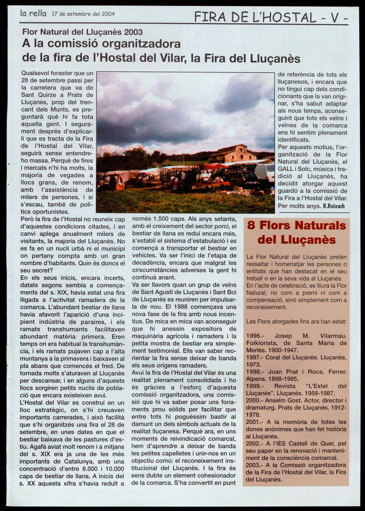 2003.- A la Comissió organitzadora de la Fira de l'Hostal del Vilar, la Fira del Lluçanès.