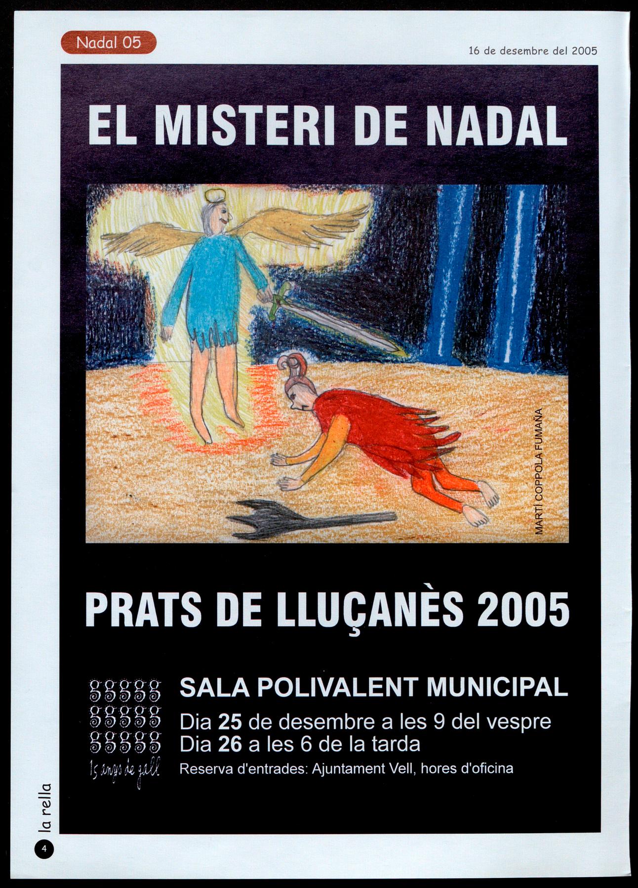 Oristà. A les 12 del migdia, Missa de Nadal. Prats de Llucanès. Els Pastorets. A les 9 del vespre, a la sala polivalent, El misteri de Nadal, de Francesc Gai (pvre.). Venda d'entrades anticipades a l'Ajuntament vell. Organitza, GALL.