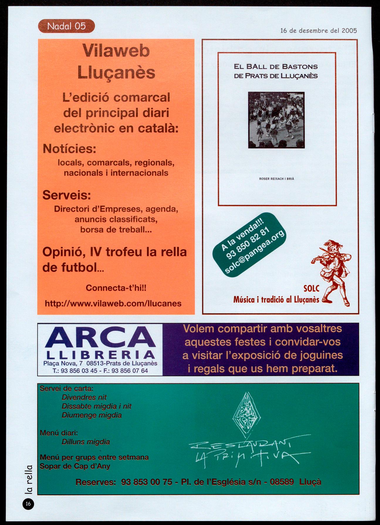 Corresponsals: Francesc Reñé (Dios!), Jordi Pujol (Sant Agustí de lIu�anès), (arme Boixader (Sant Feliu Sasserra), Gerard Verdaguer (Perafita), Marta Giravent (Sant Boi de lIu�anès), lluís Bosoms Francesc Pardo (Alpens), Montserrat Vila (Santa (reu de Joglars), Mercè Sabata (Merlès), Estela lopez (Sobremunt), Marta Faja (Oristà), Montse Surinyach (lIu�à), Xavier Barniol (Sta. Eulàlia de Puig· oriol), laura Megias (Sant Bartomeu del Graul.