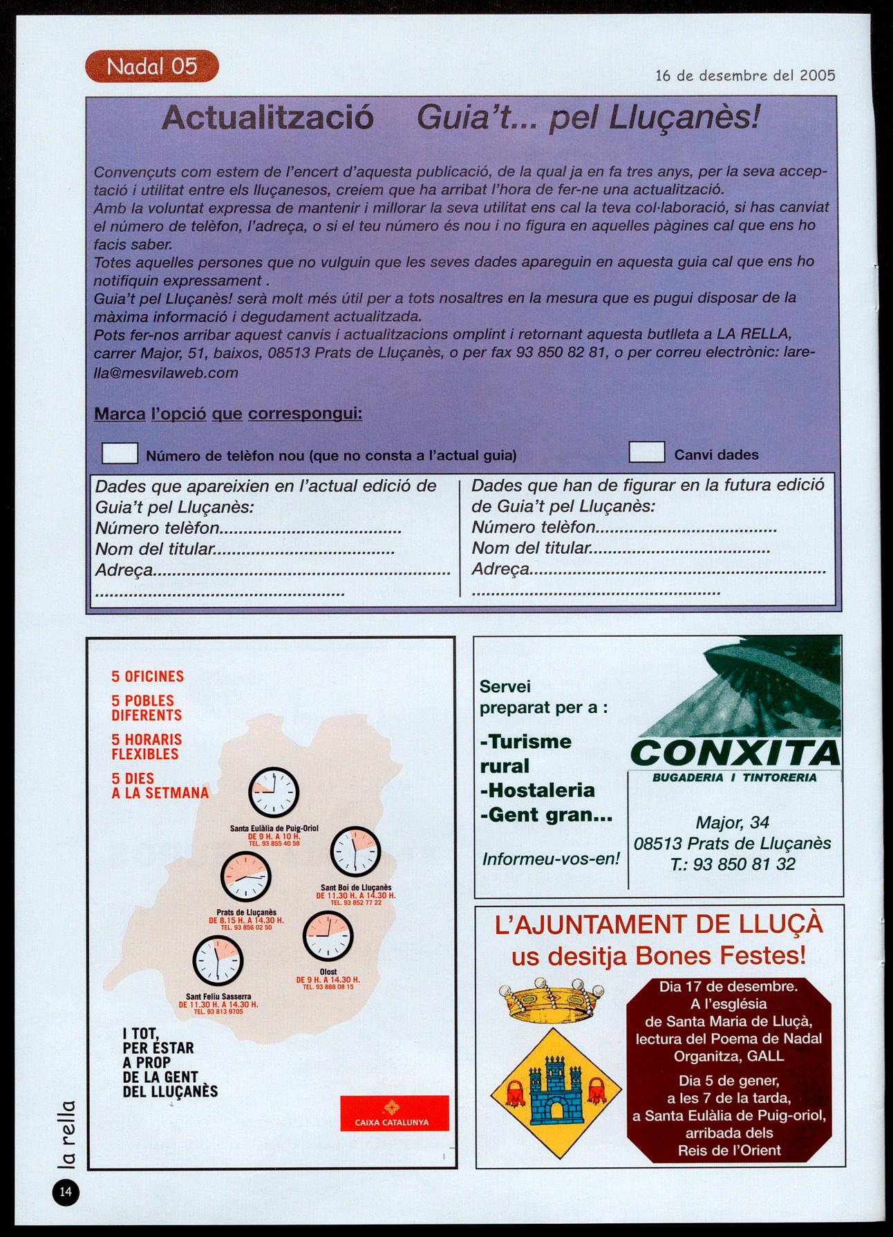 Dades que apareixien en l'actual edició de Guia 't pel Lluçanès: Número telèfon