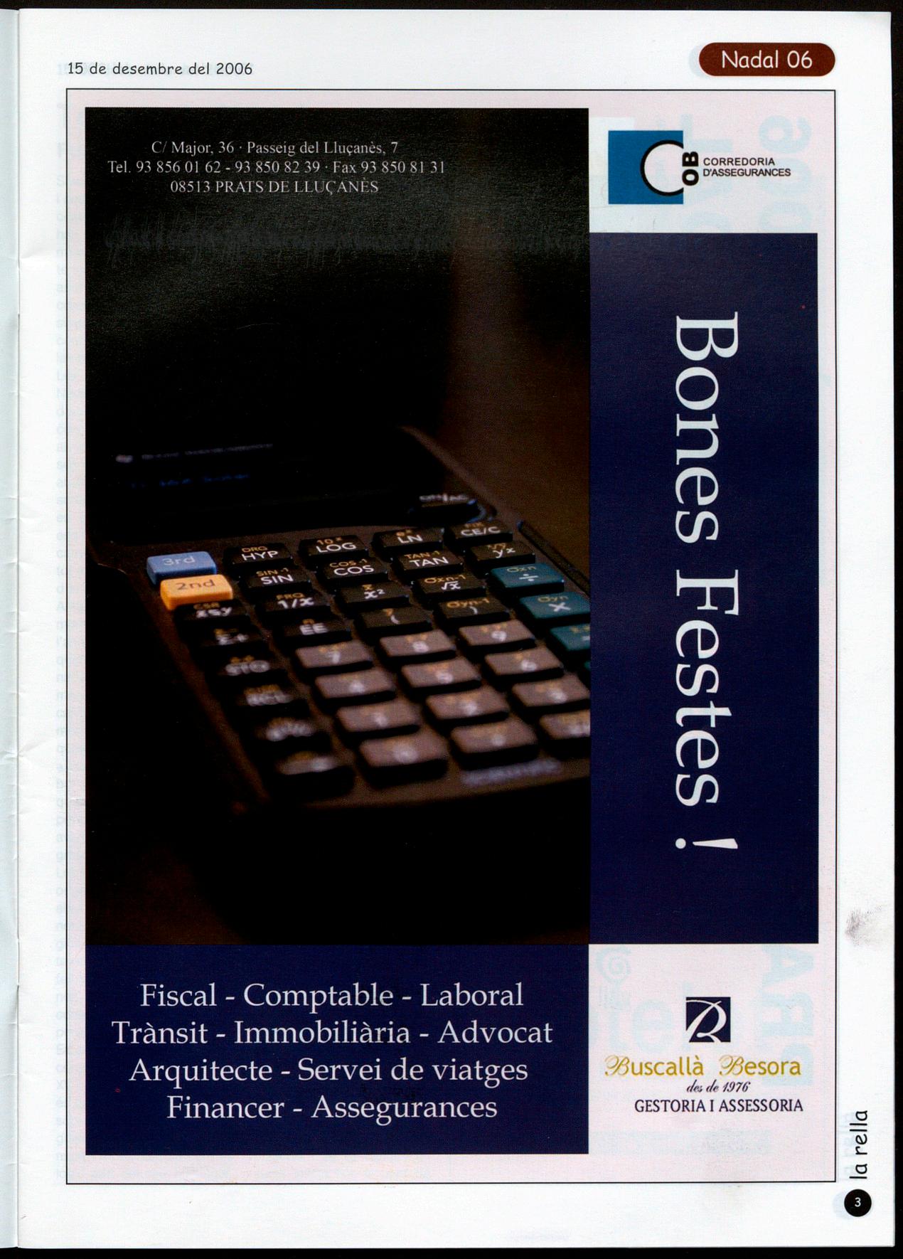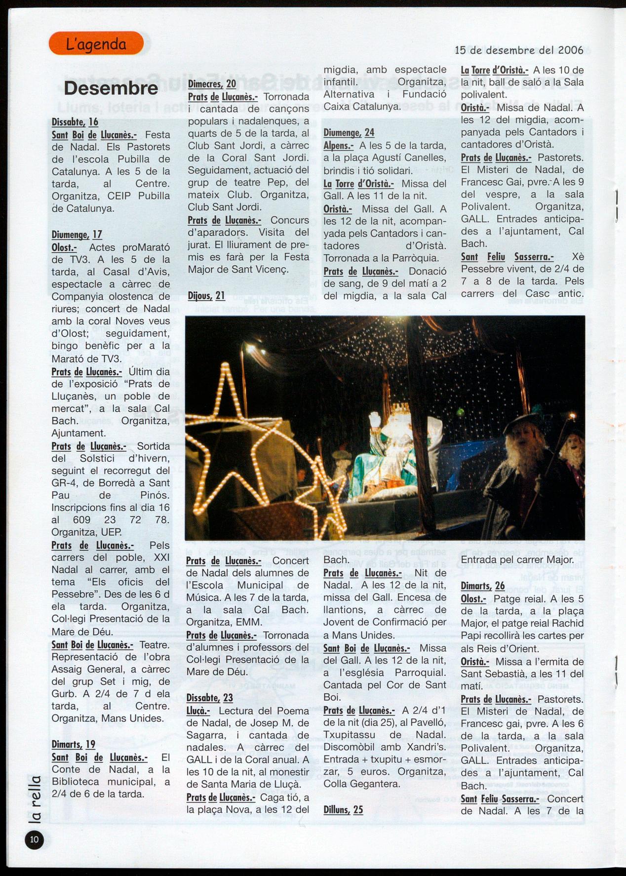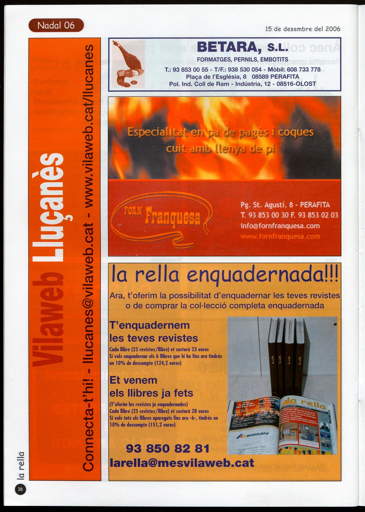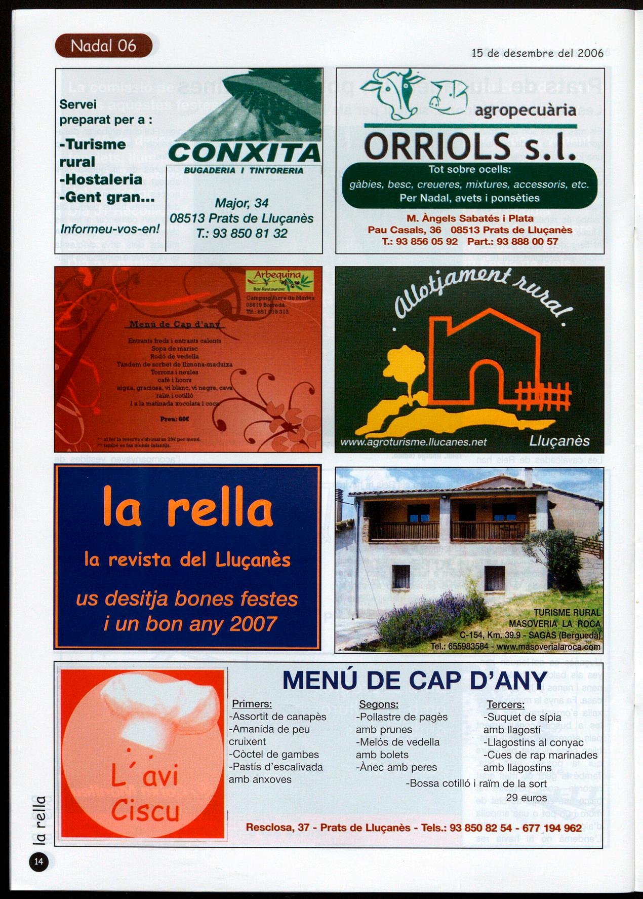 L'estructura d'aquest número de la rella, com veureu, no canvia gaire respecte de l'anterior. Hi trobarem reflexions sobre aspectes potser poc coneguts de la comarca en aquest període; també hi trobarem algunes notícies de l'obertura d'aquest temps nadalenc, receptes d'aviram de Nadal