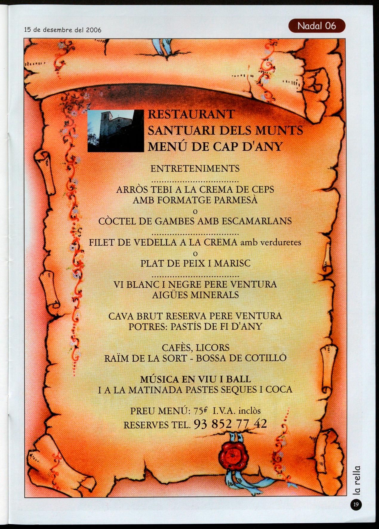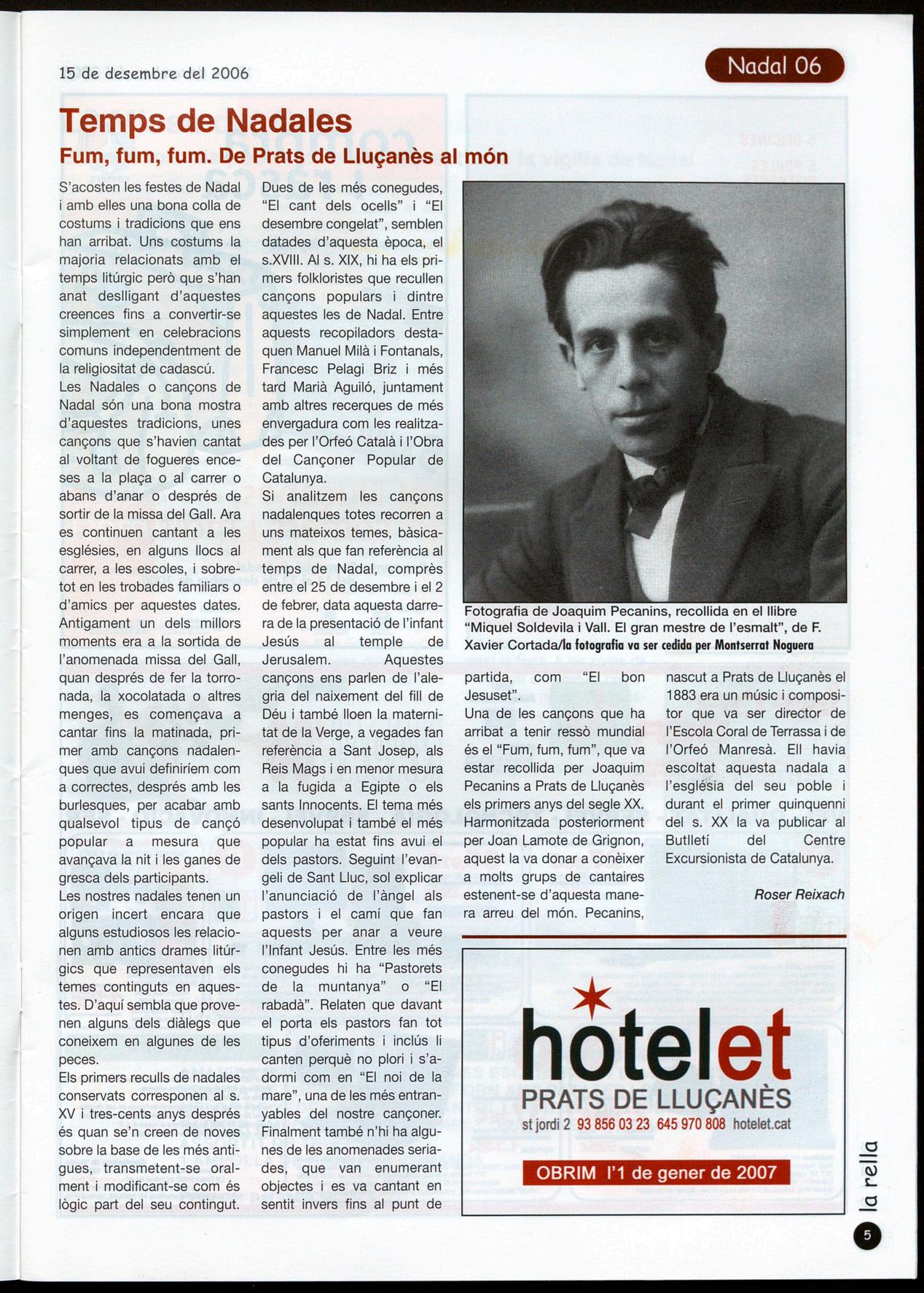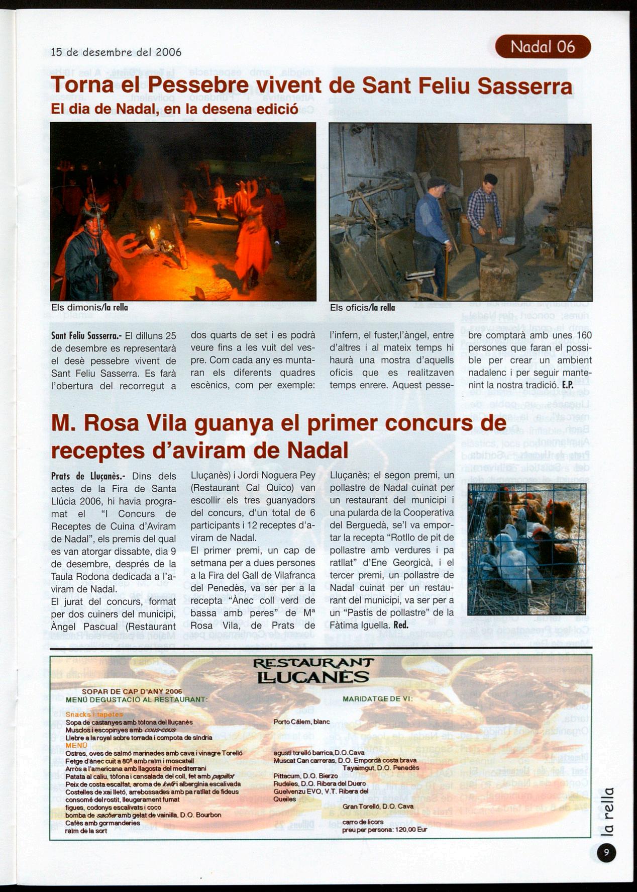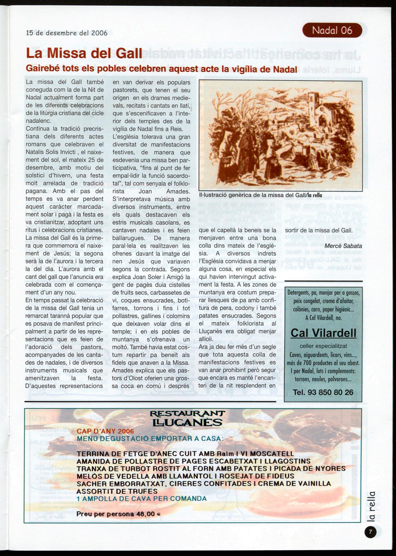 L'estructura d'aquest número de la rella, com veureu, no canvia gaire respecte de l'anterior. Hi trobarem reflexions sobre aspectes potser poc coneguts de la comarca en aquest període; també hi trobarem algunes notícies de l'obertura d'aquest temps nadalenc, receptes d'aviram de Nadal