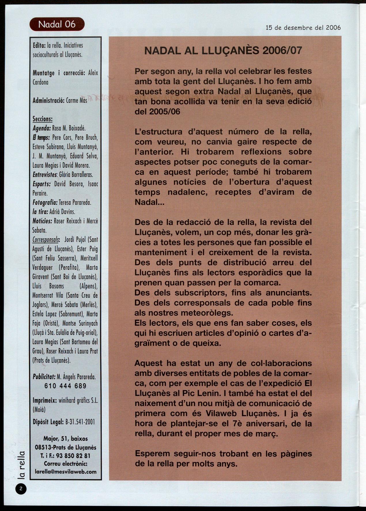 Per segon any, la rella vol celebrar les festes amb tota la gent del Lluçanès. I ho fem amb aauest s'90,.117,!Jtrra Nldi�¡�:�fi lu tan \jOHt\�cò1lil� t/i �eïU� 'en de12005/06