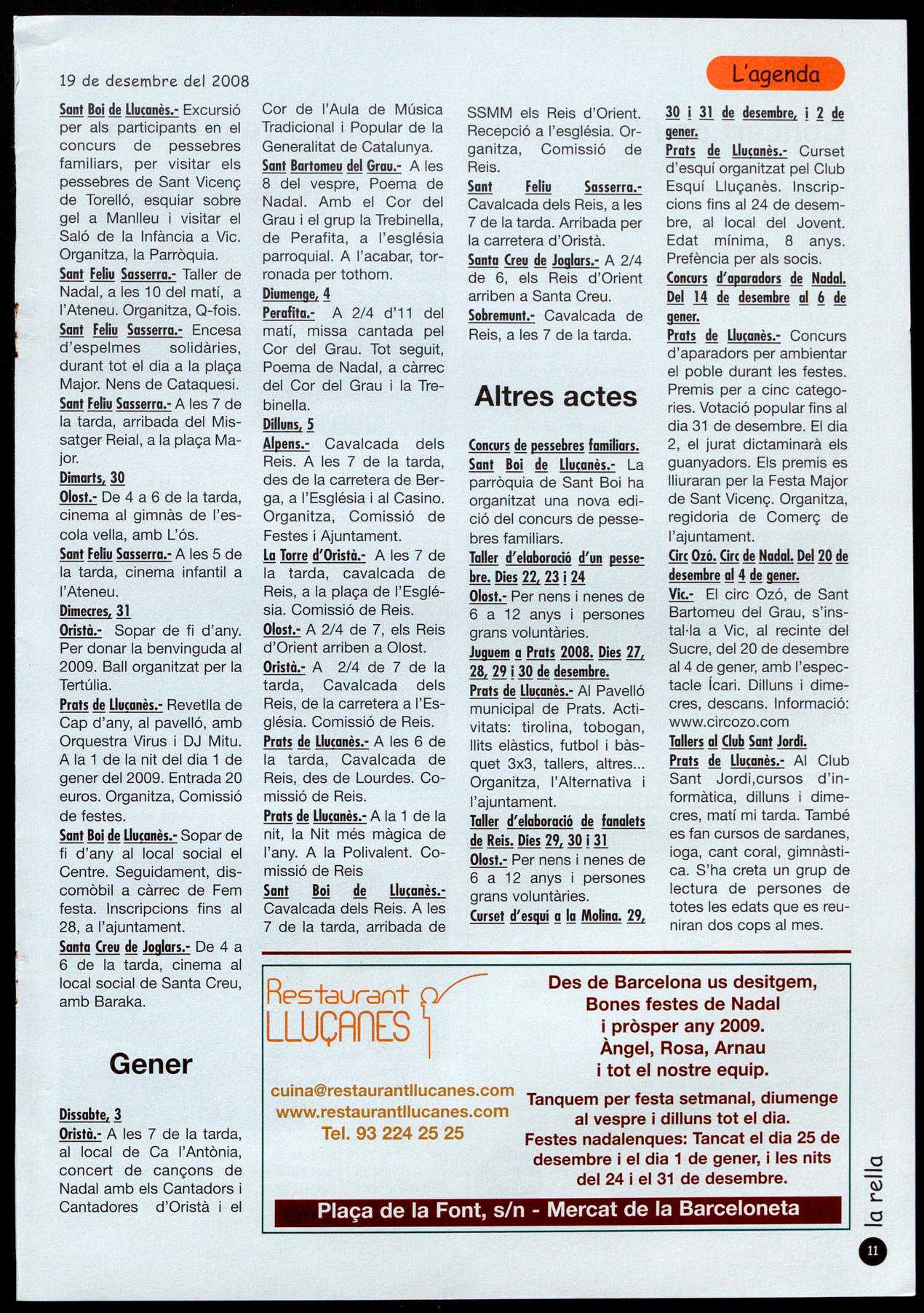 Extra Nadal 2008 - la rella, revista del Lluçanès - 19 de desembre del 2008