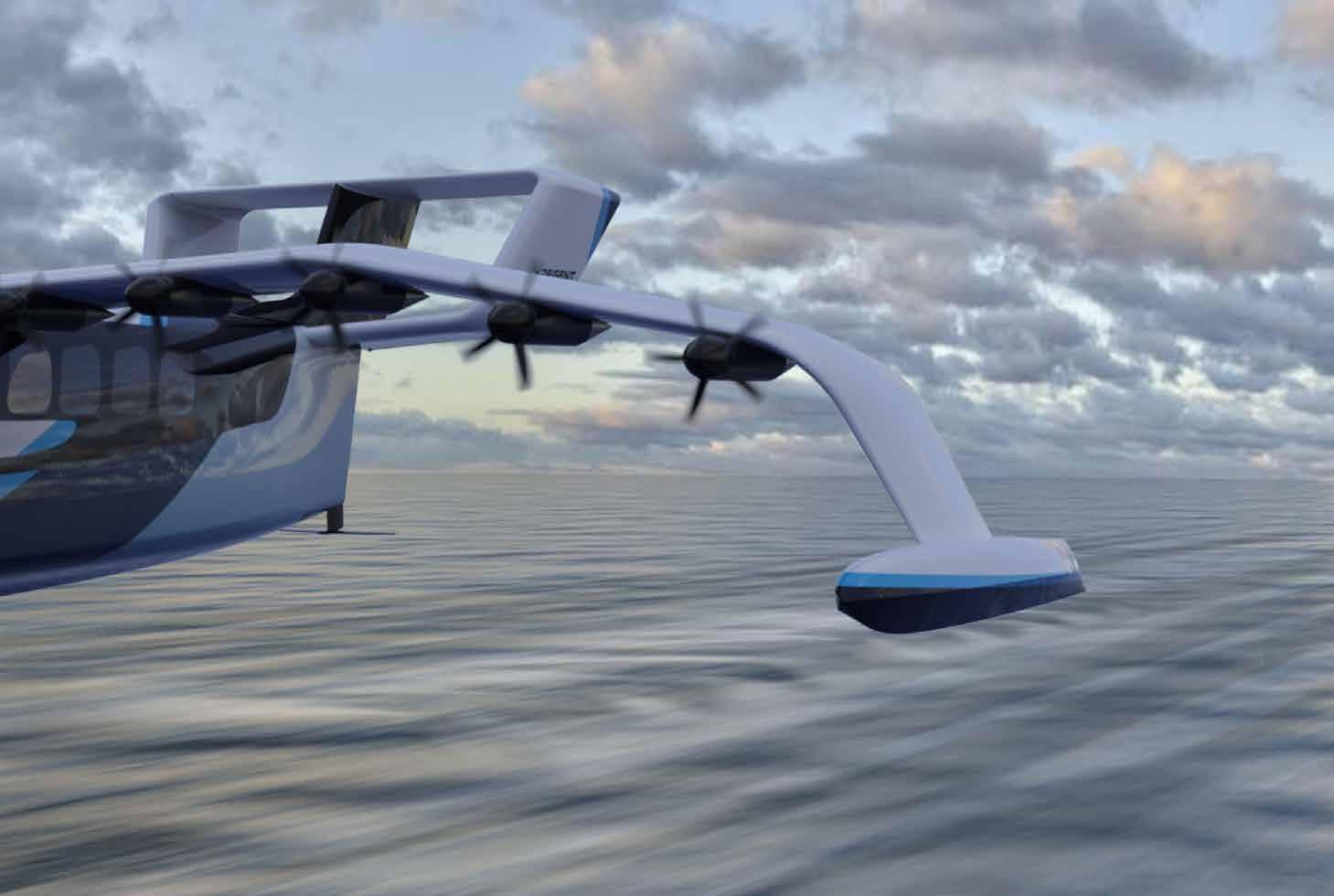 REGENT Craft's seagliders are a perfect combination of an aeroplane and a boat. They operate using ground effect, a technique that allows them to glide just a few metres above the water's surface, reducing drag and increasing speed. These electric vehicles are not only fast but also eco-friendly, offering a zero-emission alternative means of transport, perfect for those seeking more sustainable options.
