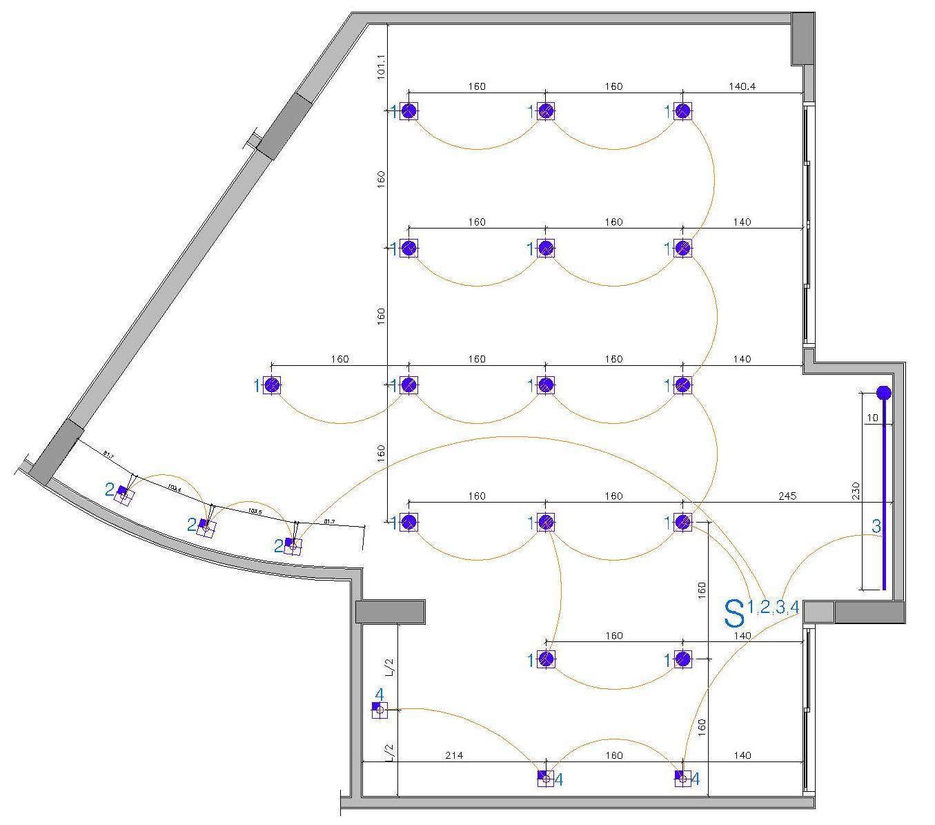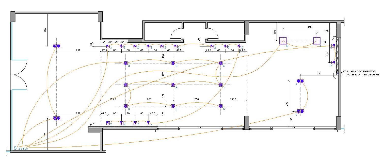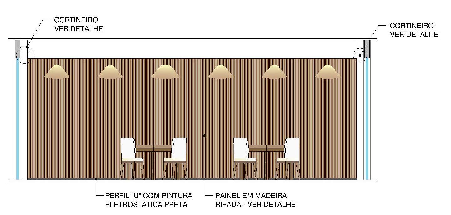 PAINEL Perfil em U com pintura eletrostática marrom / rodape ADRÃO DE ILUMINAÇÃO Spots e embutidos quadrados