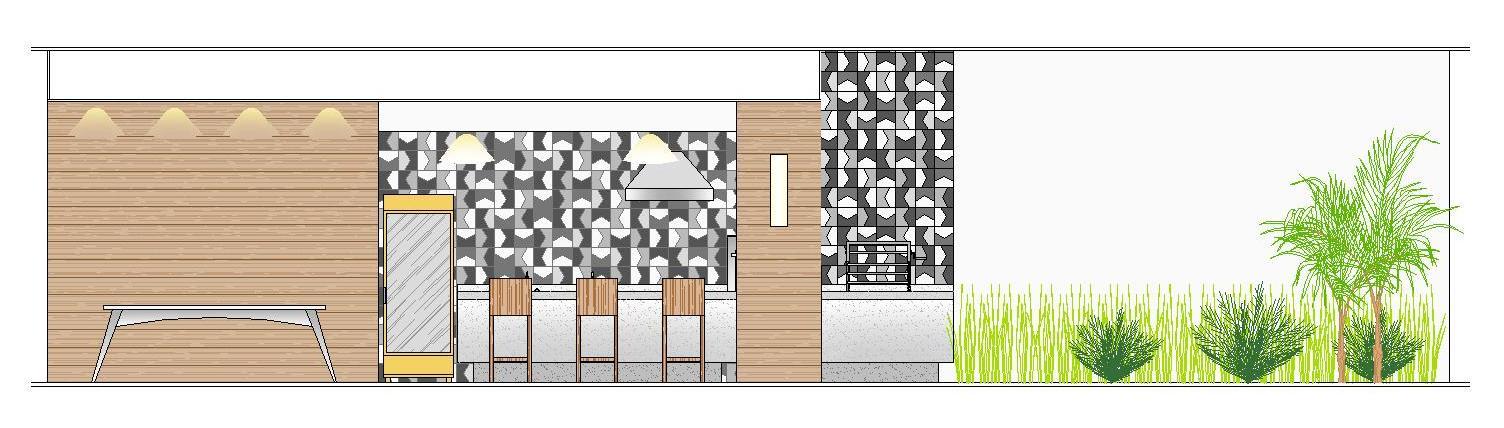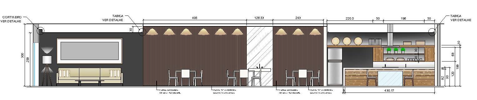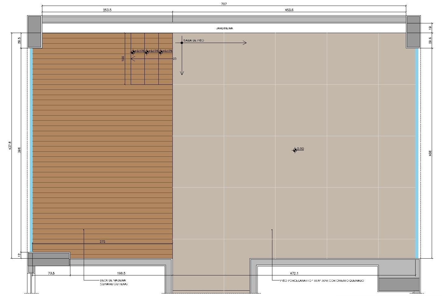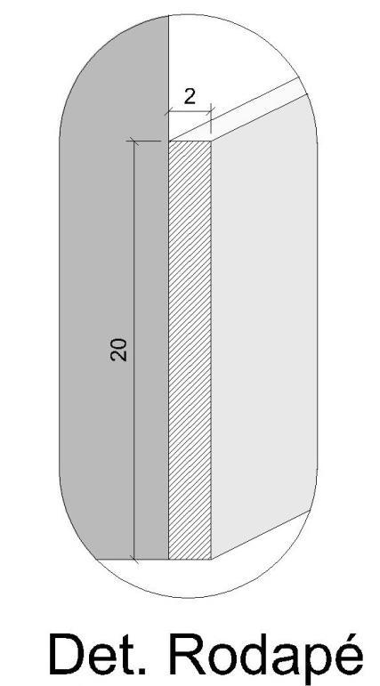 (C) REV. ALVENARIAS Porcellanato Crossover ACT RET HARD RET Forest NO 15 x 120cm RODAPÉ GERAL MDF revestido de laca branca . reto /H= 15cm (Não aplicar onde há revestimento imitando madeira)
