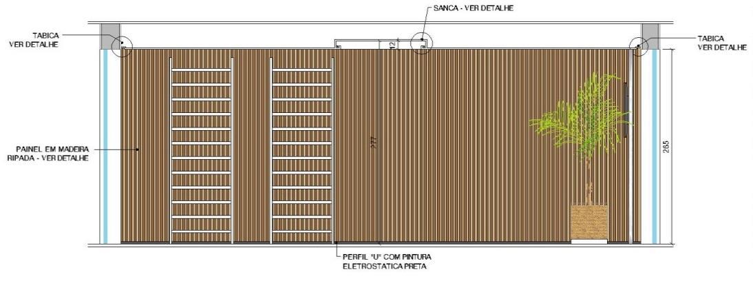 (C)ALVENARIA porcelanato Econative wengé, da Portobello, imita réguas de madeira de 20 x 120 cm (C)COLUNAS porcelanato Econative wengé, da Portobello, imita réguas de madeira de 20 x 120 cm REVESTIMENTO MARCENARIA