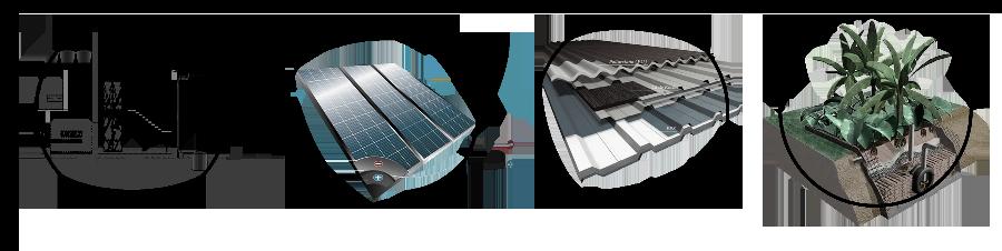 Placas fotovoltaicas Telhas termoacústicas Pedra Bruta Talhada Biodigestortratamento de residuos