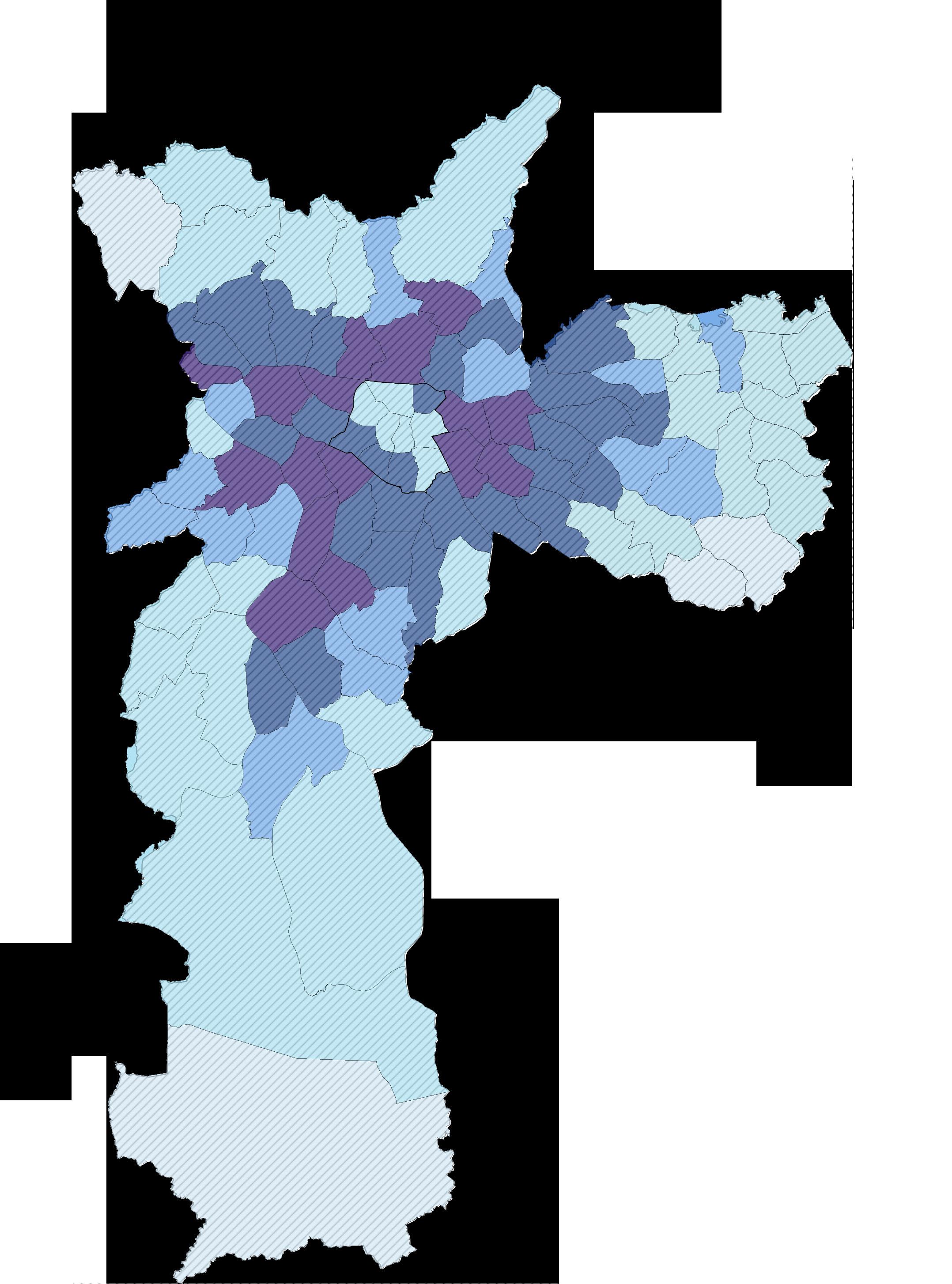 Figura 6 - Mortalidade por neoplasias (câncer) por cem mil habitantes. Fonte: Rede Nossa São Paulo