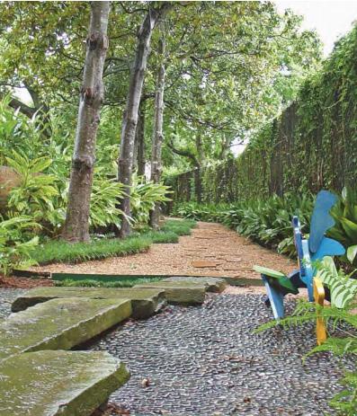 Figura 8 - No hospice de Houston, Texas, a paisagem restauradora externa inclui um rio metafórico composto de pequenas pedras, com trampolins que permitem às pessoas atravessar um ‘rio’.