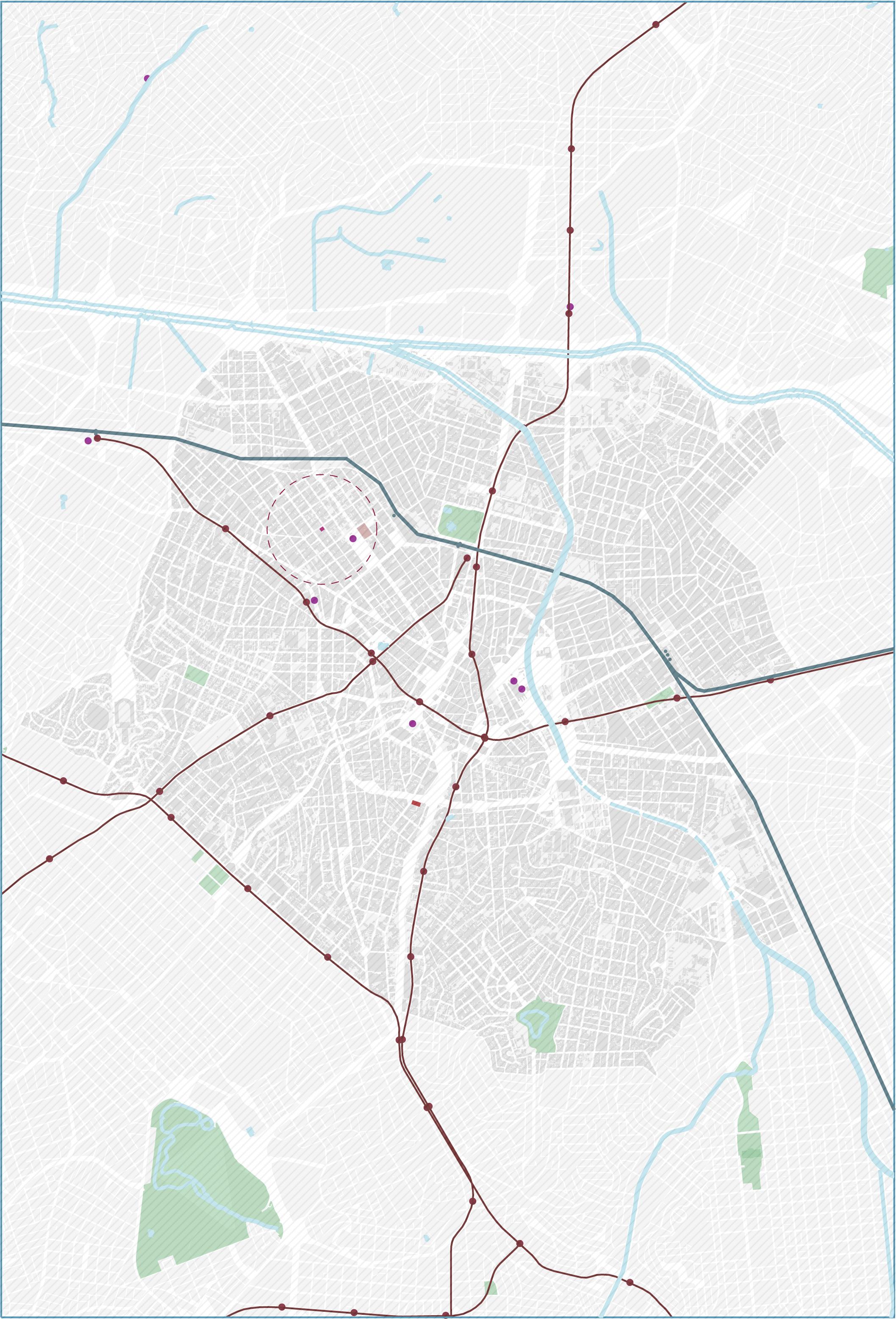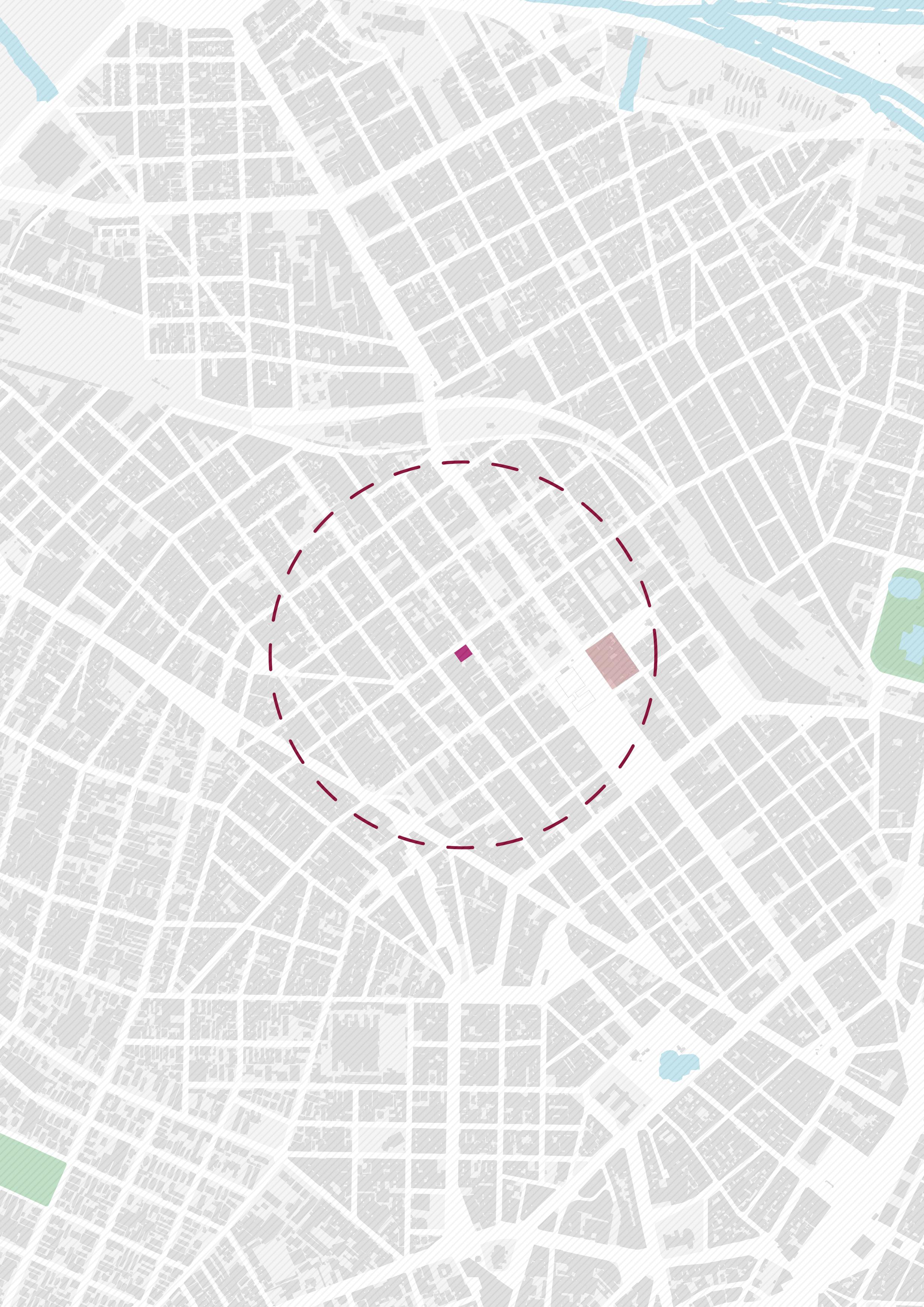 Analisando o mapeamento realizado, o projeto se insere em um contexto urbano com facilidade de acesso devido aos diversos modais que servem o centro, possibilitando a conexão com a cidade e além cidade. Ao analisarmos o traçado do bairro dos Campos Elíseos percebe-se poucas vias locais e também que é marcado por barreiras, como a linha do trem e o “minhocão” que configuram quebras na continuidade do traçado. A largura das avenidas Rio Branco e Duque de Caxias aumentam a desconexão do bairro com o entorno, criando um ambiente cercado dentro da cidade. O terreno é adjacente a duas vias coletoras, a Alameda Nothmann e a Conselheiro Nébias. Na Alameda Nothmann existem dois pontos de ônibus nas quadras próximas, facilitando o acesso por esse modal. Em relação a vegetação, nas proximidades, está localizada a Praça Princesa Isabel e também podemos perceber alguns maciços arbóreos no entorno, que podem possibilitar a melhora do microclima local, uma vez que as folhas absorvem a radiação solar e aumentam a umidade atmosférica, que refresca o ar próximo.