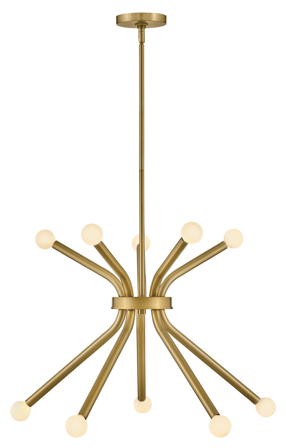 MID - CENTURY MODERN MEETS ART DECO IN THIS CHIC CHANDELIER WITH A FUN TWIST ON THE ICONIC SPUTNIK DESIGN. AXTONTM INTERIOR LARKLIVING.COM 83855 BK | PG 25 SHOWN WITH G16.5 BULB