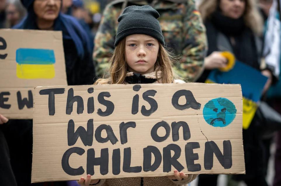 A child on protest against the war between Ukraine and Russia March 7, 2022 | First News Education UK