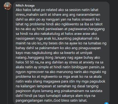 One of those who posted the comment was Mitch Arzaga, a parent, shared her Kwentong KAYAKAP last June 18, 2022, where she was able to reflect herself from all of the program's Key messages, she shared about the negative effect of stress and anxiety on her relationship with her family and even her health. She emphasized that in her experience, she learned that it is critical to take care of oneself, to continue living with prayer and faith, and to express one's emotions and struggles not only to trusted adults, but also to her children, whom she considers to be her greatest social support