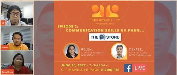 Employability conducted the second Episode of the EMPLOYABILI-TV podcast with guests from SM Department Store namely, Sir Dexter Ramirez – HR Head and Mam Belen Orosa – Assistant Vice President, SM Store The said episode was aired on CIM Facebook page attended by our CareerUPrime Scholars and sponsored families
