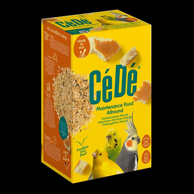 Alimentation d’entretien prête à mélanger pour tous les oiseaux d’ornement. Aliment complémentaire pour toutes les espèces oiseaux d’ornement. Pâtée idéale pour maintenir la santé de vos oiseaux en période de repos (après la période d’élevage et la mue). Donnez à vos oiseaux l’alimentation d’entretien Allround CéDé en plus de leur nourriture principale pour compléter leur alimentation.