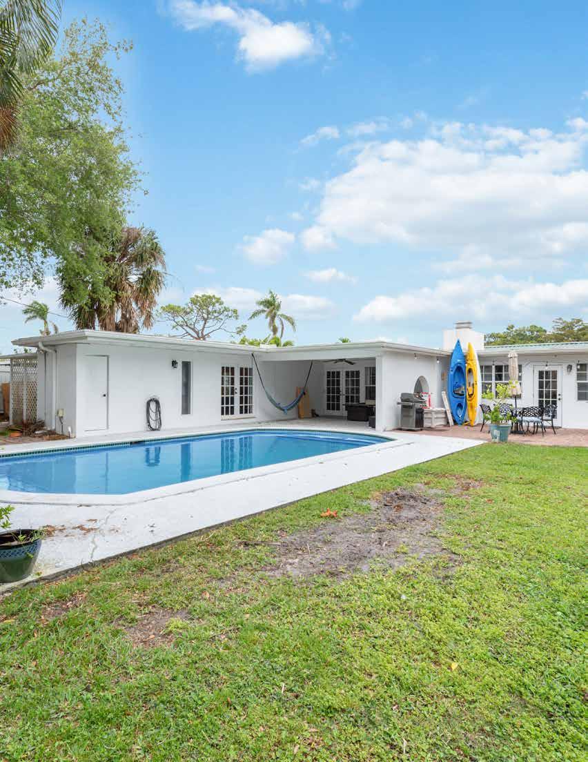 This beautiful home was renovated in 2013, and with a desirable floor plan and outdoor space, it's great for entertaining and easy living. Featuring a family room with a wood-burning fireplace, a home office with built-ins, plus extra details like exposed brick, wood-beam ceilings, and plantation shutters. French doors lead to the covered lanai, in-ground pool, paved hot tub deck, and separate pool bath, perfect for having a summer party. The playful backyard is fenced and irrigated with a lush landscape, and no approval is needed for pets. The expansive kitchen boasts granite countertops, a tile backsplash, a pantry, and stainless steel appliances.
