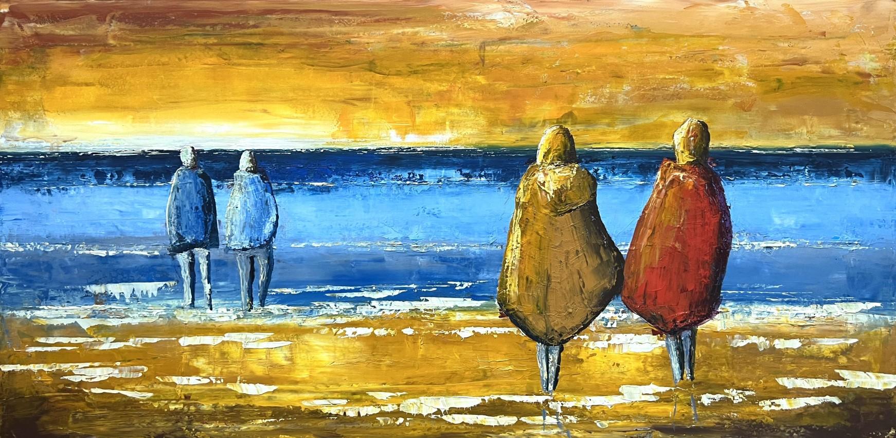 To mennesker på en strand… 2024, 60 x 120 cm.