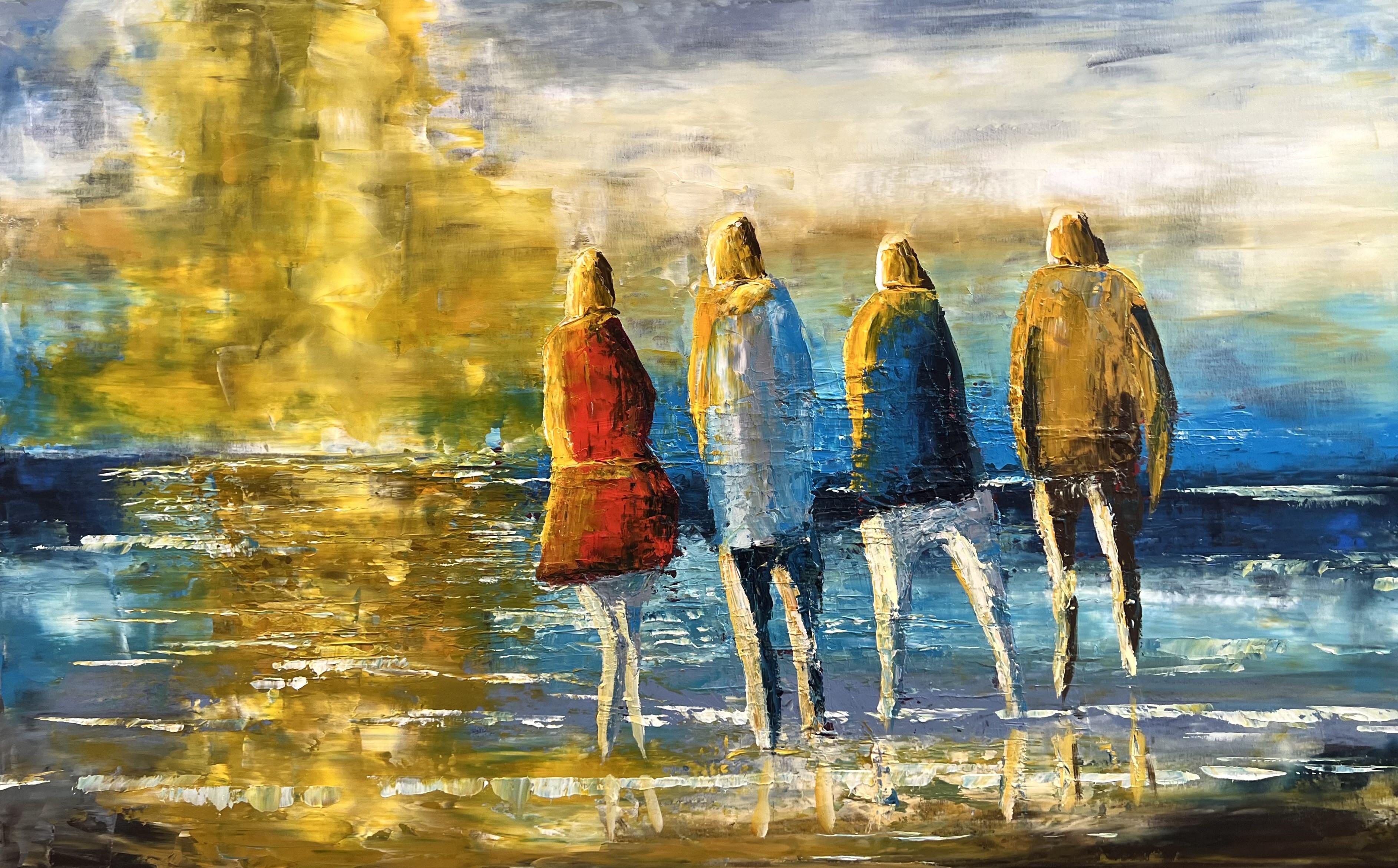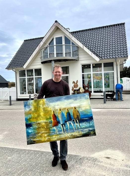 Og de kommer stadig til Vejers. Således stod der aftenen før åbningsudstilling i Strand-galleriet Vejers en Københavner i bare tæer udenfor galleriets vinduer. Han havde været i havet til en aftendukkert, og nu havde han forelsket sig i hovedværket fra serien Mennesker ved havet. Det måtte han eje, og jeg endte derfor med at få travlt i atelieret.