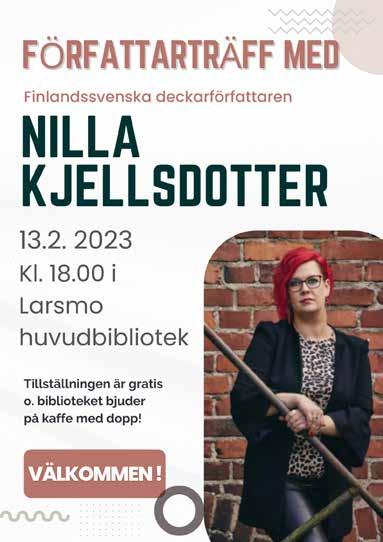 Nilla Kjellsdotter debuterade med den starka lokalt färgade deckaren ”I rättvisans blod” 2020. Två år senare kom boken ”Flickan i Stenparken” som också handlar om den österbottniska polisen Mija Wadö. I vinter har vi ännu en spännande bok av författaren att se fram emot. Nilla Kjellsdotter kommer att besöka oss i Larsmo 13.2.2023.