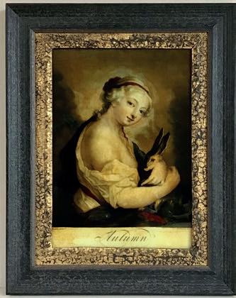 Although the 40 paintings were of uniform proportions, the ancient stretcher frames were not - resulting in the choice of moulding 243 494 000, which has a deep rebate although not enough to accommodate the artwork. Alan then added a 12 x 15mm fillet painted in a matching rich brown colour creating an interesting 3D effect and enhancing the final presentation.
