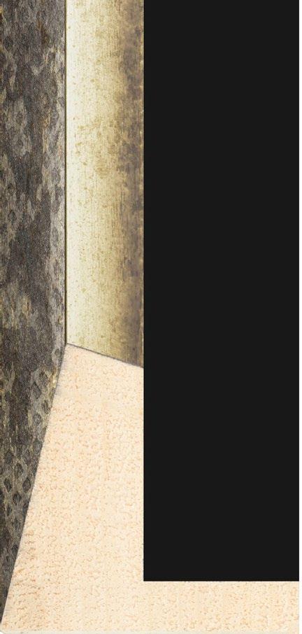 Slightly aged foiled panels with subtle orange rub through, modern transitional styling