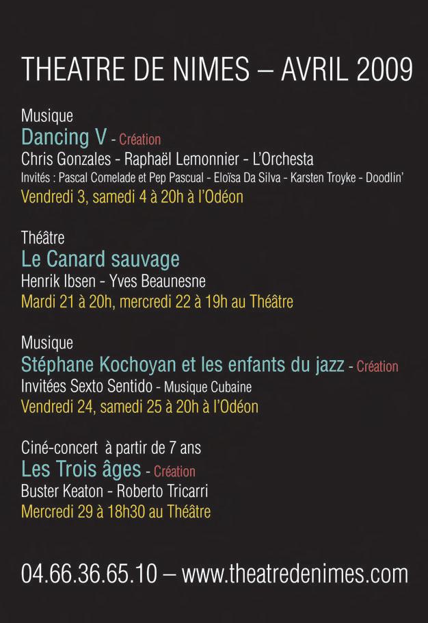 - L’Ecole des femmes de Molière le vendredi 15 mai à 20h30 au Théâtre de Beaucaire. Tél: 04-66-59-71-34.