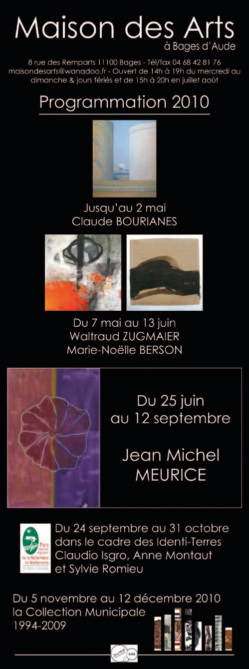 Marie-Noëlle Berson, plasticienne. «L’univers de ma peinture est un voyage qui a commencé aux Beaux-arts de Bordeaux. La peinture gestuelle et cosmique de Jackson Pollock, l’art d’Antoni Tapies, la recherche sur le blanc de Ryman… parmi bien d’autres, ont trouvé un écho profond en moi, dès le début. L’exploration est alors intérieure et spatiale à la fois. L’expression doit être directe et immédiate, trace de l’instant… la visite d’anciens sites indiens Anasasis (Amérique du Nord) avec ses pétroglyphes au milieu de nulle part, traces d’un passé ancestral est resté gravé dans ma mémoire. Mes thèmes sont le désert, l’espace explorés à partir d’objets, les écritures-traces. Du 7 mai au 13 juin à la Maison des arts à Bages. Tél. 04 68 42 81 76.