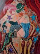 Louise Cara nourrit son oeuvre du chant du monde. Traversées, écoutes, perceptions… C’est une artiste qui « sonne » comme le ferait un instrument, en écho aux tumultes de l’univers, à ses murmures subtils, aux visages croisés, aux rencontres, aux échanges humains, aux symboles et aux signes invisibles. En 2004, quand elle rouvre la mythique Galerie de la gare à Bonnieux, c’est pour rassembler des artistes autour du collectif « For Art » dans une démarche d’art citoyen. Partenaire associée en 2007 du Festival de la culture soufie, à Fès, elle intervient lors d’une performance en compagnie de musiciens et de poètes. Au Grenier à sel l’œuvre dialoguera avec d’autres formes artistiques. Les poèmes de Nicole Barrière, écrits tout spécialement pour Totems City, viendront s’accorder à la force jaillissante de la «ville-maille, ville faille », ou encore à la nuit du labyrinthe. Muriel Bloch, conteuse, fera vivre in situ des récits inspirés par les toiles de l’artiste, des mythes et des contes choisis au regard de ces villes totem. Villes pour plus de mille et une nuits au carrefour de l’orient et de l’occident, alliant et mêlant traditions soufie, juive, emprunts au Maroc, au Yémen, à New York.