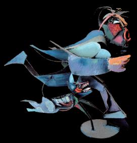 Magicien du fer, François Bazin-Bidaud garde, au fil des années qui passent, le goût de tord r e , d é c o u p e r, c o u r b e r, d é c h i r e r, s o u d e r, retordre et colorer le métal pour créer ses sculptures