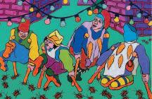 ,Gil de Bassan est un jeune artiste toulousain. Les couleurs saturées de ses tableaux, contenues par un dessin affirmé, le caractère grotesque, l’animation frénétique de ses personnages, tout un monde burlesque, noceur : matadors, boxeurs, acrobates, gueux à la manière de Bruegel, le situent dans la veine de la figuration libre même s’il préfère le terme de « figuration pop ». Des œuvres fortes à la peinture et au gel acrylique inspirées des techniques de peintures laquées découvertes au Vietnam et en Thaïlande. Gil de Bassan propose aussi à la Galerie Toubkal ses « alignements » de bonbons, de parfums, de voitures, souvenirs d’une courte carrière dans la publicité. Du 8 décembre au 10 janvier à la Galerie Toubkal, rue Glaize à Montpellier. Tél. 04 67 91 06 97.