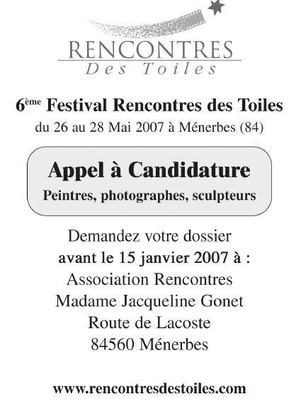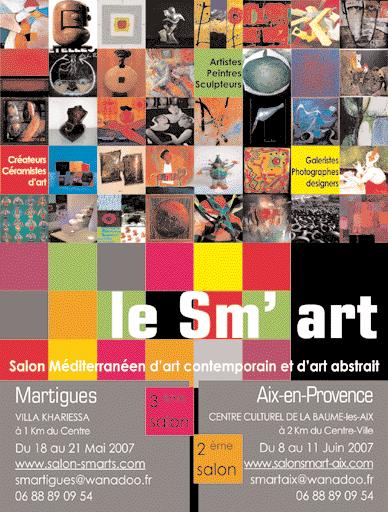 ,le Sm’art, 2ème Salon Méditerranéen d’art contemporain et d’art abstrait. Un rendez-vous unique avec l’art….une chance exceptionnelle de présenter ses œuvres à Aix-en-Provence. La présence des artistes, galeristes, peintres, sculpteurs, créateurs d’art, céramistes d’art, designers, plasticiens, véritables interlocuteurs des visiteurs (6450 en 2006).
