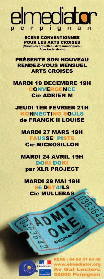 Les 15 et 16 décembre au 51 à Sète, au Lieu Noir à Sète. Tél.04.67.53.57.26 et au Centre Rabelais à Montpellier. Tél.04.67.60.53.70.