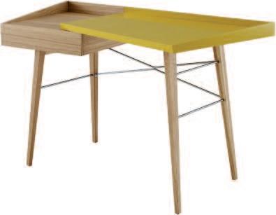 Litho est une approche poétique de l’espace de travail Fidèle à son style, Thibault Desombre a choisi de mélanger har monieusement les matières et les for mes pour dessiner un bureau asymétrique, posé sur de fins pieds en chêne La partie gauche, équipée d’un tiroir, est plaquée en chêne, alors que la partie droite crée un contraste élégant grâce à une finition laquée satinée dans des couleurs qui se marient par faitement Les pieds sont en chêne massif assorti au coffre Un croisillon arrière en acier chromé mat assure la stabilité de l’ensemble La for me gainée et inclinée des pieds confère à ce bureau une très grande élégance L’intérieur du tiroir est laqué. www.lafenetre.com