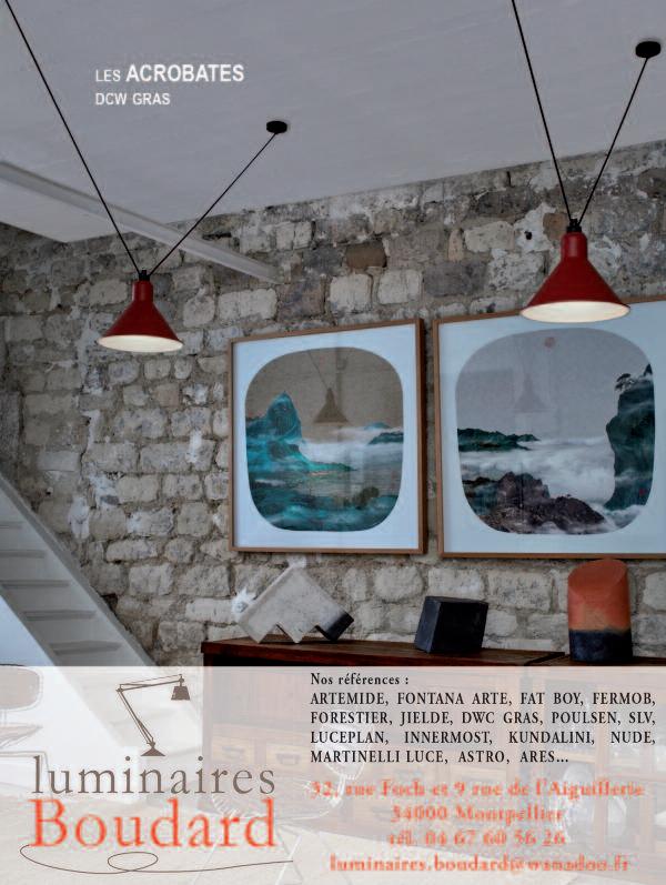 Les marques sont très créatives On trouve désor mais beaucoup de câbles de couleur qui peuvent s ’assortir à tout type de décor Les ampoules ambrées à filament Led Des lustres cages de toutes les couleurs Pour en citer certaines : Artemide, Flos, Foscarini, Kartell, Forestier, Jielde, Poulsen, Fat Boy, DCW 32, rue Foch à Montpellier. Tél. 04 67 60 56 26. www.boudar detcie.fr