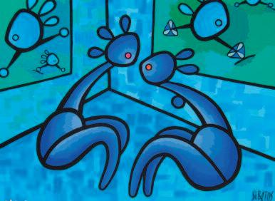 • Matthieu Marcola, qui avec ses dessins de grand enfant, présente des rêveries urbaines, des songes champêtres pleins d’animaux et de personnages abracadabrantesques.