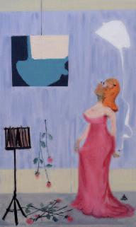 Le voyeurisme introspectif de Frédéric Blaimont nous rappellerait facilement l’univers de Hopper, à une différence près : si chez Hopper le spectateur est caché, invisible comme s’il regardait la scène sans être vu, Blaimont, lui, nous propose des sujets en mesure d’assumer le poids du regard de la société Sans pour autant donner une importance capitale au jugement, il accepte l’idée que nous sommes l’image que nous dégageons Que tout, dans notre construction, est en relation avec la capacité d’acceptation de l’autre Il suggère un système dans lequel nous serions capables d’aimer nos dissemblables, pour tout ce qu’ils ne sont pas Contrairement à ses travaux passés, où il mettait en avant ce qui semblait de trop, il n ’ a pas peur aujourd’hui de mettre en lumière ce qui manque Et c ’est peut-être là une marque de maturité, que de comprendre que l’exclusion est plus souvent due à l’absence de ressemblance qu ’ au rejet de la différence. La palette aussi a évolué Le Terraccota devient bleu piscine, sur des fonds blancs qui aplatissent le relief Plus de concession, plus d’alibi, plus de pardon à travers une recherche de douceur esthétique Le sentiment n ’est plus à vendre. Il est à prendre, ou à laisser. NC