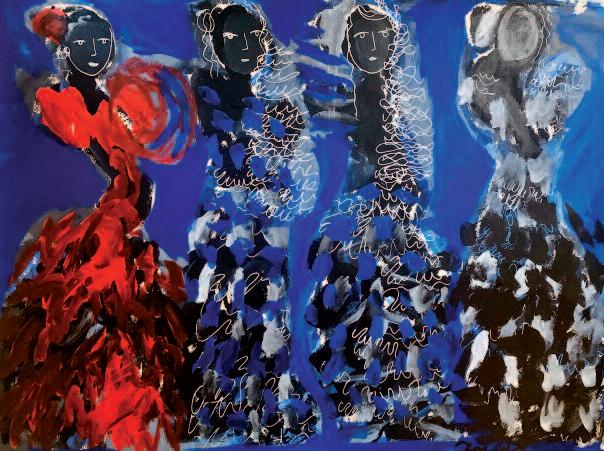 Jeune artiste de 21 ans, Jules Milhau peint et dessine depuis toujours Son inspiration s’inscrit dans ses racines familiales : la Camar gue, l’Espagne, l’Algérie, la Corse... Son univers est profondément méditerranéen. Il partage son temps entre la peinture et ses cours de flamenco À La Serre, Jules Milhau présente SAETA, une série dont le titre s’inspire d’une musique flamenca sacrée chantée lors des processions de la Semaine Sainte en Espagne Des défilés de femmes aux mantilles et d’hommes aux allures de toreros ont inspiré l’artiste. Sur ses toiles se dessinent des silhouettes sombres aux robes colorées empreintes d’émotions et de gravité