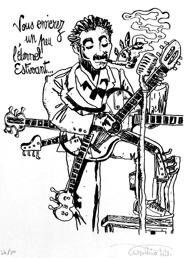 La plupart des dessins ou sculptures de Brassens que j’ai vus étaient figés comme si on voulait le statufier, le ligoter sans vie Je préférerais faire 100 portraits de lui en couleur avec les moustaches vertes ou orange s’il le faut, pour le rendre humain, pour lui redonner son rythme tranquille, inimitable J’espère que je serai compris dans mon essai d’interprétation de l’oeuvre d’un champion de la chanson et d’un immense pourfendeur des cons ”