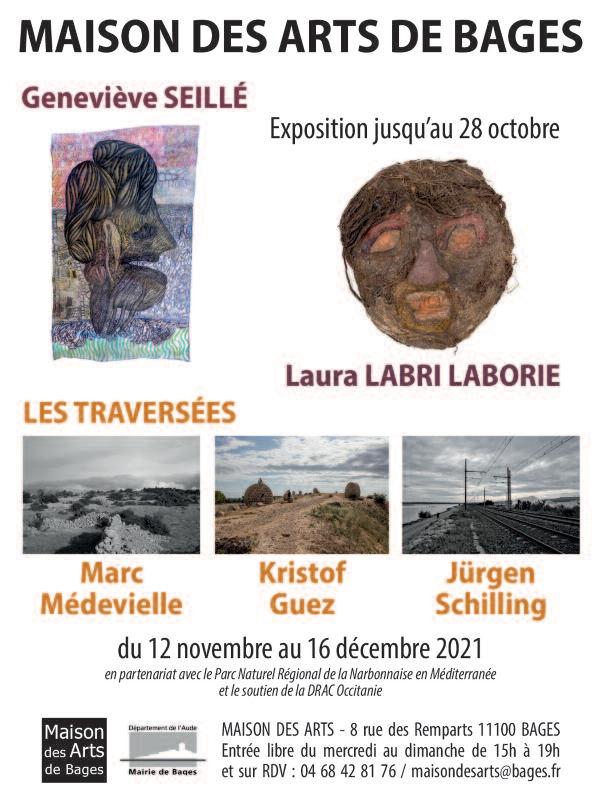 Jusqu’au 28 octobre, Laura Labri Laborie et Geneviève Seillé présentent leurs travaux La première scelle sa démarche artistique sur une assise spécifiquement terrienne, manifestant un intérêt précoce pour l’aspect et la profondeur des sols De son côté, Geneviève Seillé a développé son oeuvre avec deux éléments : le corps et le mot Conçue en partenariat avec le Parc naturel régional de la Narbonnaise, l’exposition Les traversées s’installera ensuite à la Maison des arts du 12 novembre au 16 décembre Le Parc a invité Kristof Guez, Marc Médevielle et Jür gen Schilling à parcourir les grandes voies qui le traversent Les artistes ont arpenté ces espaces pour livrer leur interprétation de ces paysages Marc Médevielle a emprunté à pied les chemins entre Fitou et Peyriac-de-Mer et a dessiné une étendue sauvage et déserte Le plasticien Jür gen Schilling a porté son regard sur le chemin de fer entre Narbonne et Fitou, entre réalisme, fascination et âpreté industrielle Enfin, Kristof Guez a abordé l’autoroute tel un explorateur en terre inconnue, en quête d’emblèmes, de motifs récurrents et de spécificités Maison des arts - 8, rue des remparts à Bages (11).