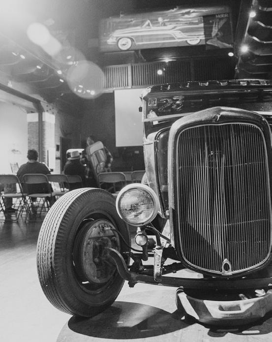 As we enter the colder months, the celebration of the automobile moves indoors with a series of speaking events. One of the most recent was “Pinetree Jamboree,” a moving history, paying homage to the early days of hot rod drag racing and hosted by Eli English, who specializes in period-correct (pre-1953) hot rods. This was a time when cars were built out of what was on hand, with more backyard ingenuity than budget. Eli English was joined for Q&A by Gabby Goodwin, Alan Johnston, Bill Neergaard, Al and Bonnie Dyer, and JD Sweet.