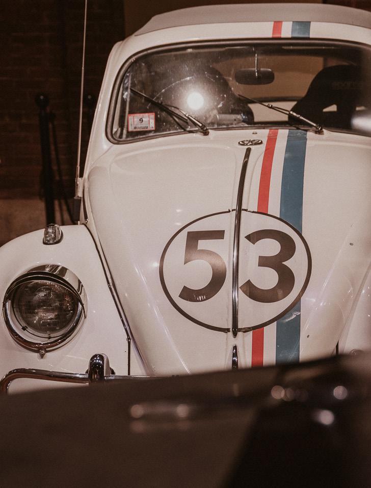 Disney participate in these forums, and so they were able to find him the vehicle he was looking for. Though he bought the car from Disney, they could not sell it to him with many of its hallmark “special” features that bring it to life. But the same chat group showed him how to hook it all back up, and now it runs through a computer on the phone. The doors open, the antenna flicks back and forth, lights flicker on and off, and the “eyelids” articulate. The Love Bug is on display now through April.