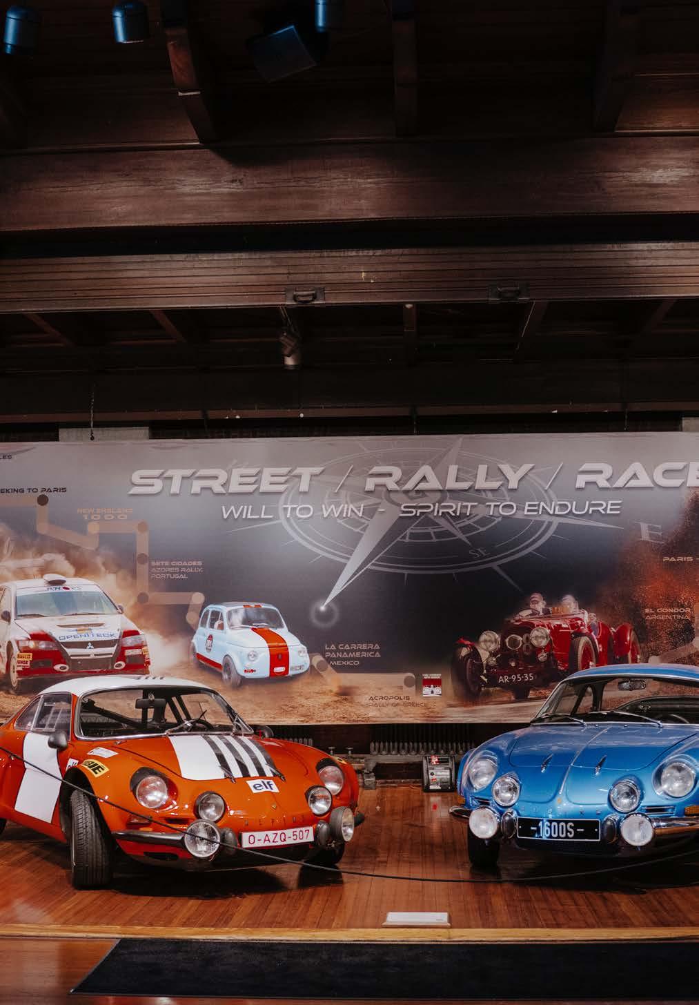they become suitable to rally. The driver and co-pilot unite in the shared goal of navigating the road through grueling heat, freezing cold, ice, and snow in an attempt to drive one’s best. This collection of Porsches, Audis, Alpines, Ferraris, and a number of motorcycles is on display to celebrate this avenue of motorsport that is unlike any other.