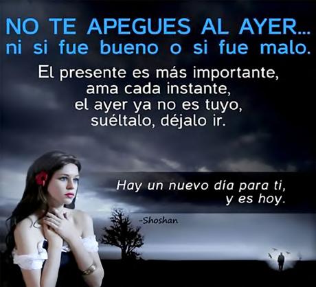 Lavidamehaenseñadoqueparaseguiradelante,avanzary noquedarestancados,esnecesarionotenermiedoaloque hemos dejado atrás. Los recuerdos siempre estarán en nuestra mente y corazón, queriendo salir hacia afuera, no hay que temer llorar y mostrar nuestras debilidades, al contrario, debemos dejar nuestros sentimientos y nuestro pasado libre, para que pueda volar bien lejos. Deja tus recuerdosdelayersalir,recuerdacadatiempocomosihoy, que ya has madurado, lo estuvieses viviendo nuevamente. Permite al ayer entrar a tu vida, será la mejor manera de recordar,notratesdetaparesosrecuerdos,añoratodoloque vivisteenesetiempo,piensaentodaslasetapasqueestaban