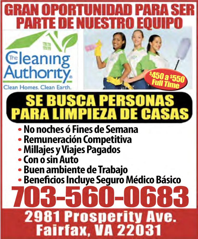 Profesionales con Experiencias A Tiempo Completo se paga Excelente Salario. Interesados llamar al (301) 881-1590