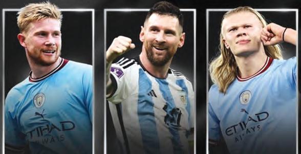 El argentino Leo Messi, hasta el curso pasado en el PSG y ahora en el Inter Miami, el belga Kevin de Bruyne y el noruego Erling Haaland, ambos del Manchester City, son los tres candidatos al premio a mejor jugador UEFA.