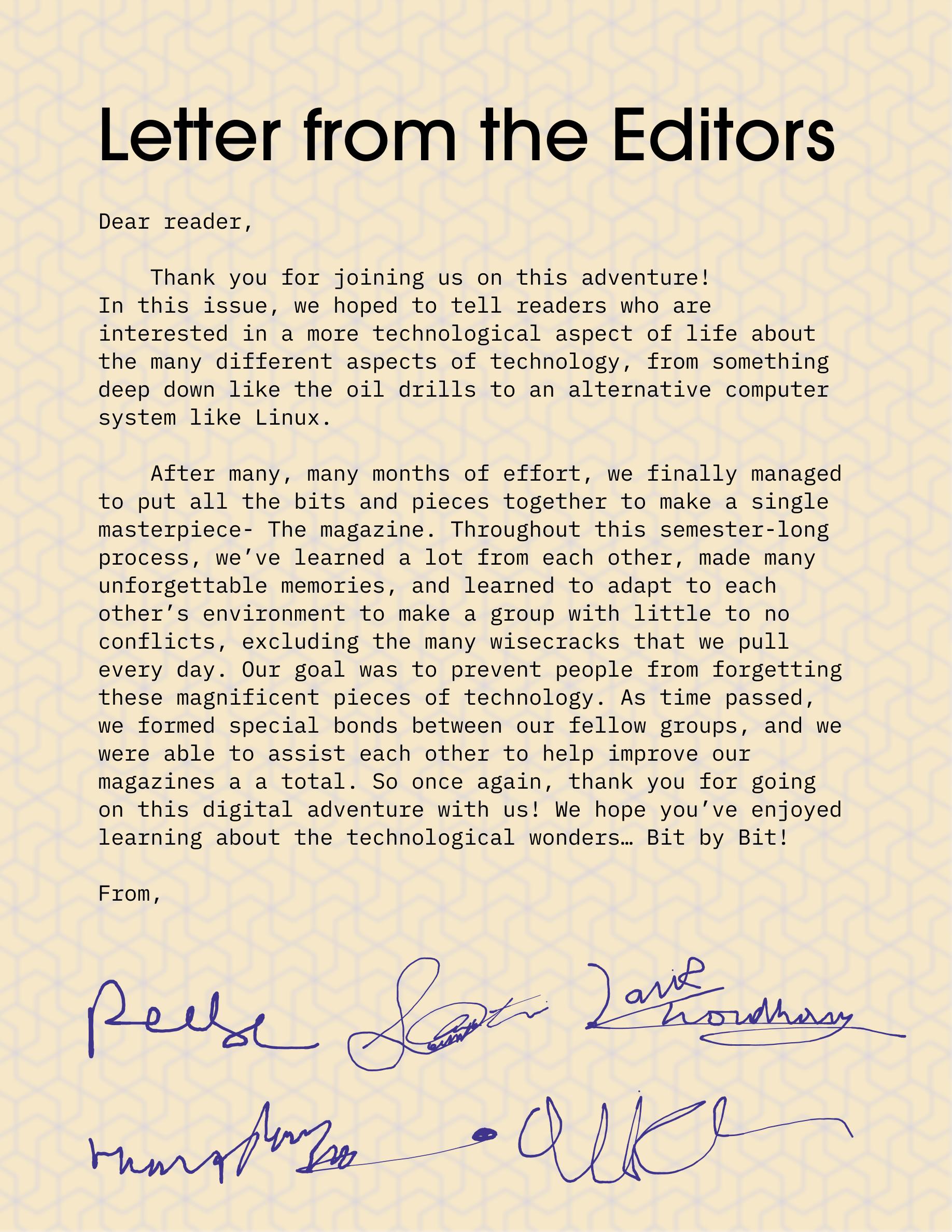Reese Armstrong is a 9th grader at the Liberal Arts and Science Academy (LASA) and is a big Linux fan. As the Linux expert, he owns a server that runs Linux and uses a variant, Fedora, on his laptop. For his feature article, he will focus on informing readers about Linux. Reese has also been organizing hackathons where everybody’s welcome to join. Additionally, he enjoys tinkering and messing with computers to help him achieve his goals. As a member of Bit By Bit, his goal is to inspire readers to learn about Linux and how it impacts daily life.